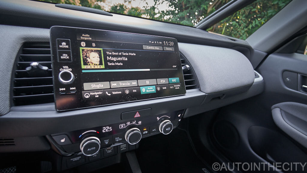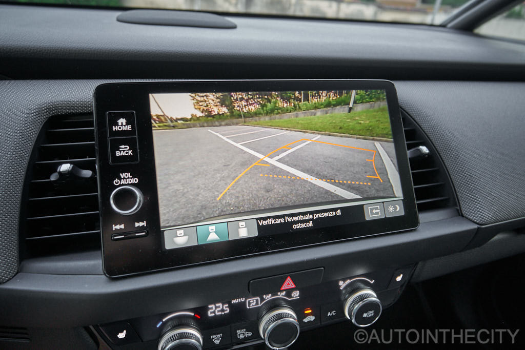 Honda ha voluto lasciare lo schermo centrale entro la linea della plancia, una decisione che condividiamo ai fini della sicurezza, e che non pregiudica l’utilizzo della infomedialità di bordo. La bella grafica del display, è abbinata ad una ergonomia che si apprezza quotidianamente, grazie ad un ottimale posizionamento dei pulsanti ‘digitali’.
