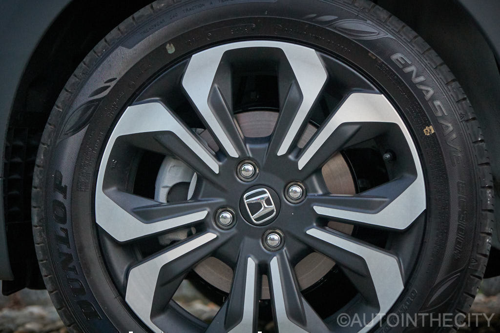 I cerchi e gli pneumatici specifici non sono fatti per impressionare, piuttosto risultano mirati a confluire verso quella economia d’esercizio che il progetto Jazz ora reclama a gran voce. Con dimensioni 185/60 R16, la ridotta larghezza del battistrada punta ad ottenere riduzione dell’attrito nel contatto con l’asfalto.