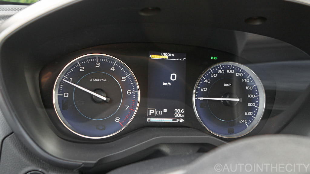 L’abitacolo riprende l’identità di casa Subaru, puntando su una eccellente qualità dell’assemblaggio, da vero marchio Premium. Il ‘Made in Japan’ è subito evidente, ed il posto guida in particolare risulta appagante. Tanto più che diversamente da altre berline, non si ha l’impressione di essere seduti in basso, e la visibilità risulta ottima in tutte le direzioni.