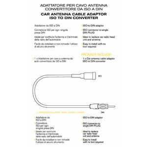 Adatatore per cavo antenna. Adattatore da ISO a DIN. Connettore ISO per ogni singola presa DIN. Ideale per sostituire l'antenna e il terminale della radio dell'automobile. Facile da installare, non richiede l'utilizzo di alcuno strumento