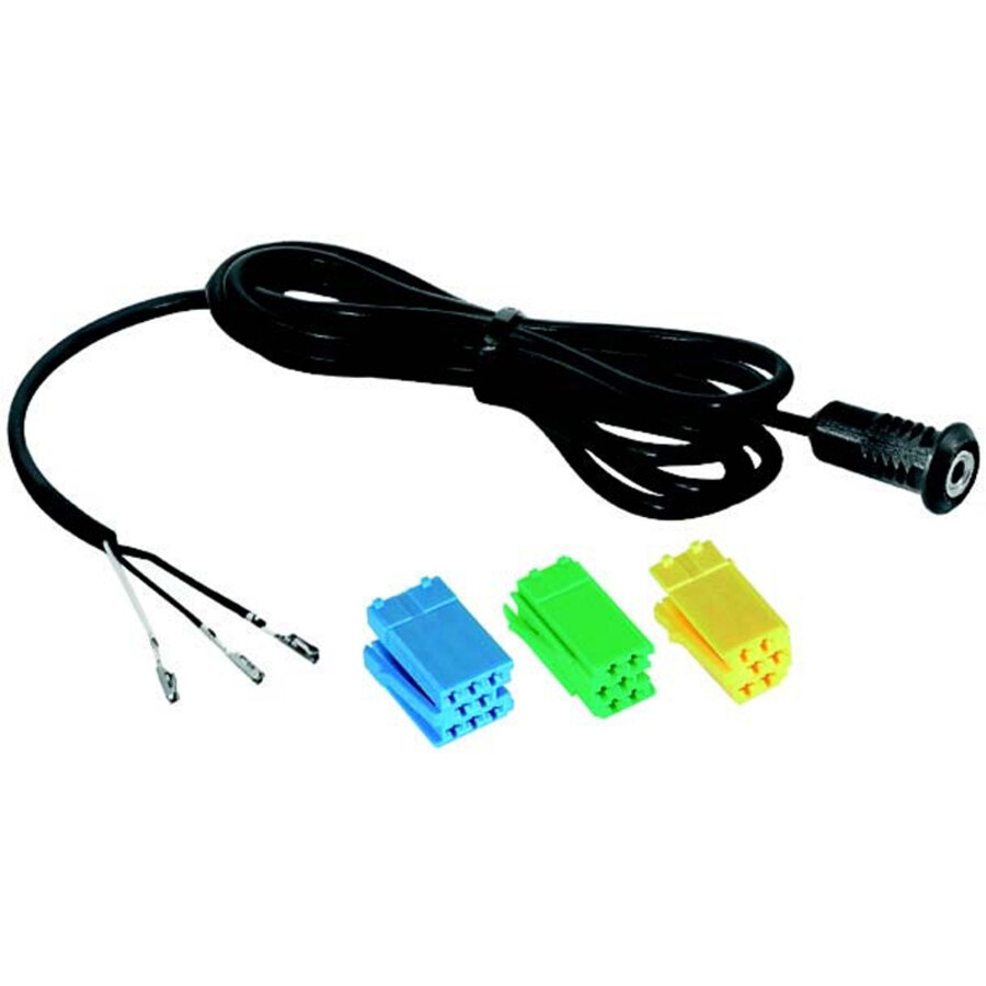 Aux-In panel connection. Audio tramite Aux-In/ Cd-changer per autoradio di serie. Funzione Aux-In con tasto autoradio SRC o CD secondo l'inserimento dei contatti. Connettori Mini-pb1.ISO.Jack 3,5 Cavo 70 cm