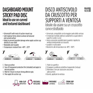 Disco antiscivolo da cruscotto per supporti a ventosa. Ideale da usare su un cruscotto curvo e ruvido. Universale, compatibile con la maggior parte delle ventose. Il materiale morbido aderisce saldamente a quasi tutte le superfici ruvide e curve. Aiuta a prevenire possibili danni quando si applica la ventosa direttamente sul cruscotto. Lavabile e riutilizzabile. Resistente alle temperature da -40°C - 100°C