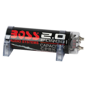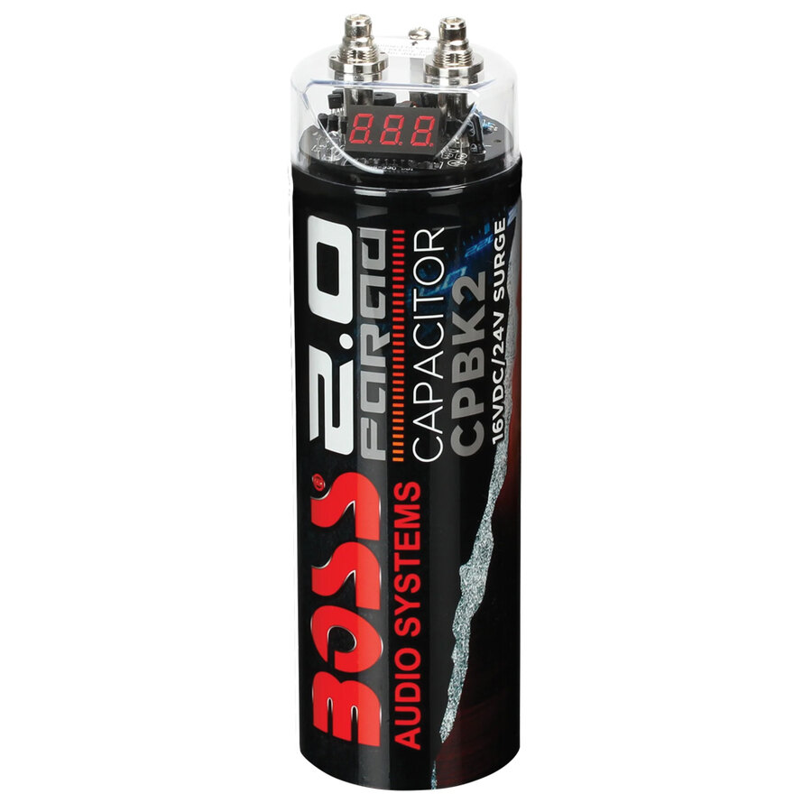 Condensatore da 2 Farad con display digitale. Basso ESR (resistenza equivalente in serie) <0,004 ohm. Avviso acustico: polarità inversa, sovraccarico di tensione e bassa tensione della batteria. Voltmetro digitale a LED super luminoso a 3 cifre. Display illuminato in rosso. Terminale con finitura in nichel. Staffe di montaggio incluse. Tensione nominale 12 V DC. Tensione massima 16 V DC