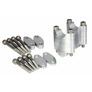 Kit distanziali in alluminio. Qualità, precisione CNC. Finitura lucida Premium. 3 misure (50-60-70mm) Comprende tre serie di viti M8 di fissaggio per diverse opzioni di altezza (+5mm, +10mm, +15mm, +30 mm). Per manubri da 22,2mm