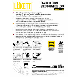 Antifurto blocca volante premium con aggancio alla cintura di sicurezza. Permette di bloccare al sedile come antifurto altri oggetti. Il colore acceso aumenta la visibilità e scoraggia i potenziali ladri. Pratico da riporre nella tasca laterale della portiera. 3 chiavi in dotazione. Lunghezza 72cm
