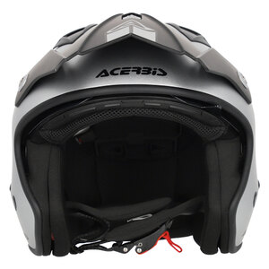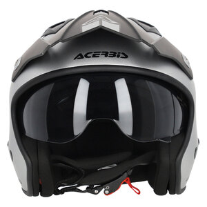 Casco jet. Calotta in materiale termoplastico. Visiera parasole integrata. Chiusura microregolabile a sgancio rapido. Interni in materiale anallergico e traspirante, removibili e lavabili. Peso: 1110g ± 50g in taglia "M". Omologato ECE 22-06