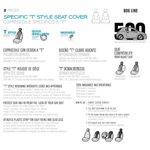 Coppia schienali anteriori su misura con design a "T", specifici per Fiat 500 2007>2020. Installazione rapida. Lavabile a mano. Rinnova l'aspetto e l'estetica degli interni della tua auto. Protegge lo schienale e dona un look originale ai tuoi interni. Lavabile e traspirante. Adatto per sedili con/senza Airbag. Copripoggiatesta inclusi