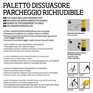 Paletto dissuasore per parcheggio, richiudibile. Alta visibilità. Super resistente: realizzato con materiali resistenti alla corrosione per garantire una maggiore durata. Sistema di piegamento a due vie. L'alta visibilità ne facilita l'identificazione. Permette di stabilire un confine chiaro e visibile