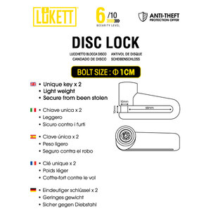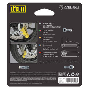 Lucchetto blocca disco. Diam. perno 10mm Chiave unica x2. Leggero. Sicuro contro i furti