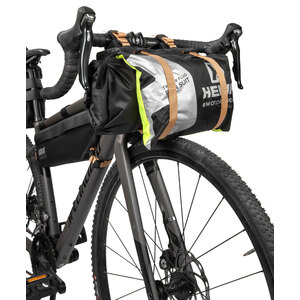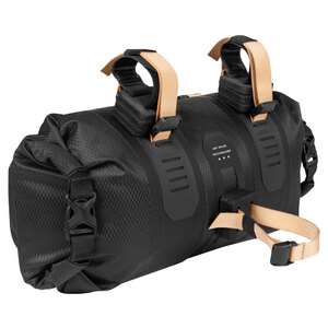 Borsa da manubrio per bici Gravel e Mountain Bike. Borsa impermeabile con capienza variabile da 9>14lt grazie al doppio sistema di chiusura ROLL-TOP. Ti permette di avere un carico ottimizzato nella parte anteriore della tua bici. Nylon ripstop alta tenacità è il tessuto di cui è composta che la rende estremamente resistente e leggera. Dotata di cinghie con chiusura a strap per il fissaggio sul tubo del manubrio e di distanziali in foam di 1cm (Kit da 8 incluso), questi permettono di regolarla e installarla a proprio piacimento. Il rinforzo in tessuto TPU con asole per l'installazione di elementi supplementari come moschettoni e/o cinghie con sistema di chiusura cambuckle consentono l'aggiunta di eventuale extra carico. Il sistema integrato Air Valve Technology ne facilita la fase di carico e ottimizza la capienza grazie alla fuoriuscita dell'aria in eccesso. Inoltre le stampe riflettenti consentono di aumentare la propria visibilità su strada