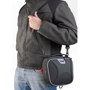 Borsello "mini" Tanklock. Materiali: 600D Guzy Nylon con inserti in PU. Tutti i materiali sono a norma REACH. Dotazioni: inserti riflettenti. Copertina antipioggia in materiale fluorescente. Maniglia e tracolla per trasporto a mano. Aggancio rapido Tanklock. Attenzione: la flangia di fissaggio specifica moto per moto è venduta separatamente