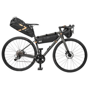 Borsa da telaio per bici Gravel e Mountain Bike. Comoda borsa impermeabile da telaio ideale per bikepacking e cicloturismo con capienza di 3,5 litri. Pratica, leggera e discreta, in tessuto leggero nylon ripstop alta tenacità, è dotata di due zip per l?accesso alle tasche, di cui una con scomparto interno per documenti. Le cinghie con fibbie cambuckle consentono il fissaggio e la regolazione a piacere. Non manca il rinforzo in tessuto pesante TPU nella parte superiore della borsa, con asole per posizionare le cinghie di fissaggio nella posizione desiderata. Presenti le stampe logo riflettenti per aumentare la propria visibilità su strada