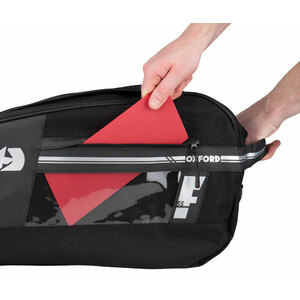 Borsa laterale in nylon. Fodera interna idrorepellente removibile. Inserti riflettenti. Tasca esterna. Maniglie e comoda tracolla per il trasporto. Include 5 inserti colorati per personalizzarla. Unica con terza cinghia di sicurezza