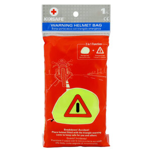 Borsa portacasco con triangolo di emergenza. Posiziona il casco con la sacca a terra accanto alla moto come segnale di avvertimento. Ideale come sacca proteggi casco e comodo in caso di guasto o incidente. Protegge il casco in garage o durante l'aggancio alla moto. Design con coulisse per una facile chiusura. Ideale per caschi jet ed integrali