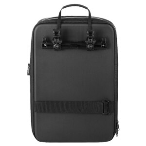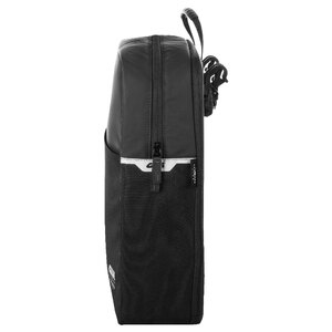 Borsa laterale da 17 litri dotata di sistema di fissaggio "Rapido" che ti permetterà di installarla facilmente sulla tua bicicletta. Munita di una pratica apertura superiore che ne agevola l'utilizzo, e di un'apertura posteriore che permette un accesso facilitato al vano di carico. Internamente é presente una tasca per laptop (fino a 17") imbottita e rete portaoggetti. La fascia a tracolla staccabile in dotazione permette di trasportarla comodamente anche a piedi. Lateralmente stampe riflettenti permettono di aumentare la propria visibilità su strada. Materiale Poly-PU