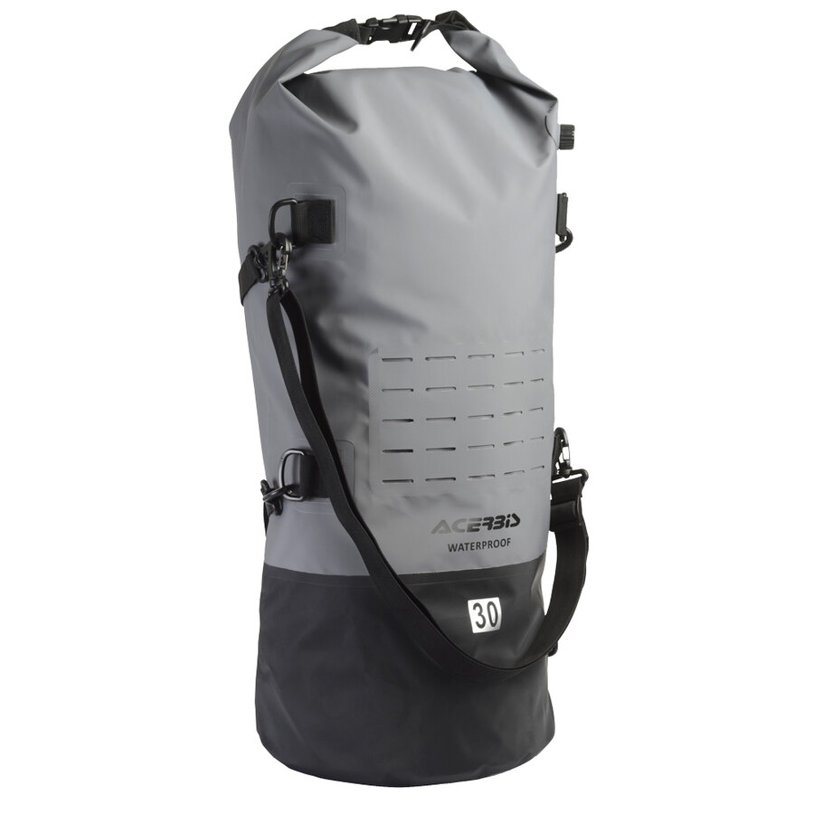 Borsone waterproof ideale per motociclisti. Capacità 30lt. Cuciture esterne termosaldate. Utile per riporre oggetti di grandi dimensioni (max 60x33cm). Comoda e flessibile. Resistente alle temperature +70° -30° Resistente alle abrasioni. Fissaggio alla moto tramite anelli a 4 cinghie. Cinghia a tracolla. Valvola di sfiato per massima compressione