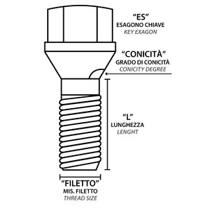 Bulloni realizzati in acciaio con alte tecnologie di produzione che ne assicurano l'affidabilità tecnica, funzionale e protettiva. Presentano una gradevole estetica. Forniti di chiave. Meccanica di precisione. Trattamenti galvanici anticorrosivi. Acciaio selezionato per la sicurezza su strada. Made in Italy