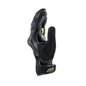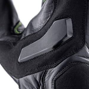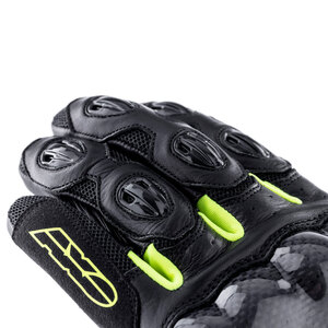 Guanto in pelle e tessuto da uomo, 4 stagioni. Protezione nocche e inserti in materiale traforato. Dita in materiale traforato con rinforzi in pelle e dettagli di protezione e ventilazione. Mignolo in tessuto traforato rinforzato con pelle sintetica e logo AXO. Aree infradito in pelle e tessuto elastico a contrasto. Dorso in pelle, inserto elastico. Pollice in materiale traforato rinforzato con pelle sintetica e dettagli 3D antiurto. Polso in materiale traforato e pelle, dettaglio elastico. Laccio polso in pelle sintetica con logo AXO. Palmo in pelle con micro forature di ventilazione ed impunture a contrasto. Area polso in pelle e dettagli 3D antiurto in pelle sintetica. Extra protezione palmo laterale con rinforzo antiurto. Dettagli in materiale "touchscreen compatibile" su indice e pollice. Chiusura laccio polso con velcro. Interno guanto foderato in microfibra. Margine polso rifinito in pelle. Protezione nocche ergonomica carbon look. Prodotto Certificato EN13594:2015-Livello: 1KP