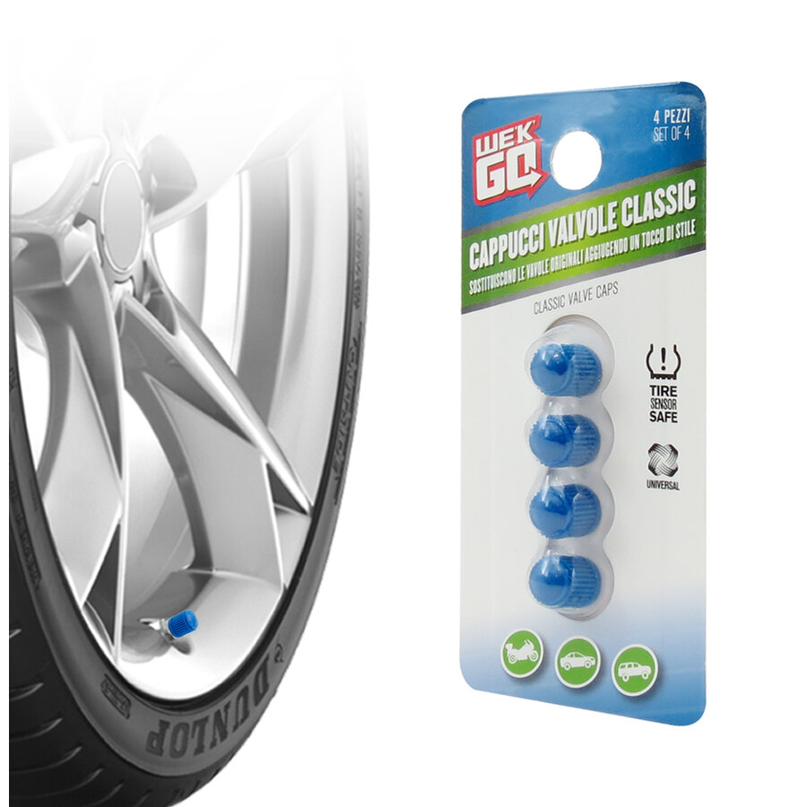 Cappucci valvole Classic. Sostituiscono le valvole originali aggiungendo un tocco di stile. Design stiloso e lavorazione di qualità. Misura universale per la maggior parte delle auto, dei camion e delle moto. Guarnizione O-Ring interna in gomma per evitare perdite d'aria. Ottimo per sostituire i cappucci valvola usurati e con perdite. Diametro interno: 7mm