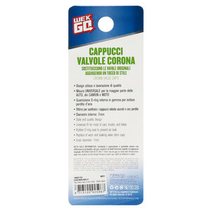 Cappucci valvole corona. Sostituiscono le valvole originali aggiungendo un tocco di stile. Design stiloso e lavorazione di qualità. Misura universale per la maggior parte delle auto, dei camion e delle moto. Guarnizione O-Ring interna in gomma per evitare perdite d'aria. Ottimo per sostituire i cappucci valvola usurati e con perdite. Diametro interno: 7mm