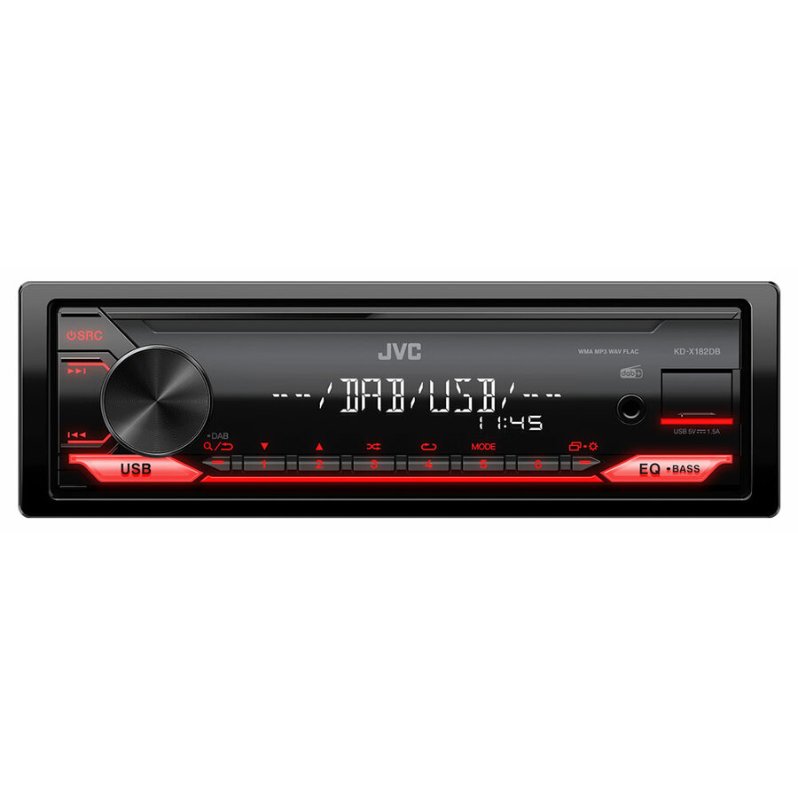 Riproduzione di file audio MP3, WMA, WAV e FLAC. Ingresso USB e AUX frontale illuminato con coperchio antipolvere. Ricarica USB ad alta corrente da 1.0A. Illuminazione dei pulsanti rossa. DSP ed EQ a 13 bande. 4x50W Mosfet. 1 preout. Radio digitale DAB+ (antenna non inclusa). Predisposizione per comandi volante (interfaccia non inclusa)