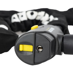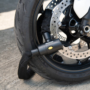 Catena con allarme. Questo prodotto combina una catena a maglie quadrate da 10mm con un forte allarme da 90 dB. Questo lucchetto multiuso manterrà la tua moto e altri oggetti di valore al sicuro dagli attacchi e l'allarme spaventerà qualsiasi aspirante ladro. Robusta struttura in acciaio temprato. Copricatena protettivo. 3 chiavi incluse. Batterie incluse (2 batterie CR2032). Lunghezza 150cm