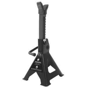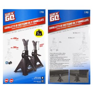 Cavalletti di sostegno da 3 tonnellate. Essenziali per sostenere il tuo veicolo in sicurezza. Regolabili: campo di sollevamento da 305mm a 450m. La struttura in acciaio resistente garantisce affidabilità e sicurezza. Le dimensioni compatte permettono di tenerlo nel bagagliaio per far fronte alle emergenze. Il design universale si adatta alla maggior parte dei veicoli. Finitura verniciata a polvere per la massima protezione contro la ruggine. Assicurare il dispositivo di bloccaggio per evitare che il carico si disinnesti accidentalmente. Il design a cricchetto consente una facile regolazione. Sella a V per prevenire lo slittamento. Certificato CE, marchiato GS e garantito TÜV