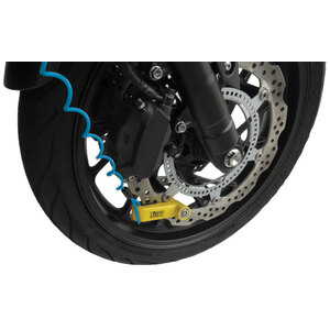 Promemoria per blocca disco. Cavo in acciaio con rivestimento in plastica antigraffio. Utile anche per il bloccaggio di casco, biciclette, borse, valigie, in viaggio, ecc
