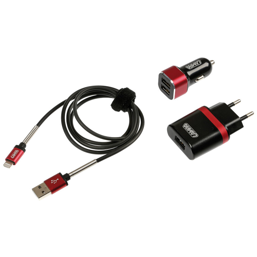 Caricatore Usb (2500 mA) con spia a Led. Cavo ricarica e sincronizzazione Universal (Apple 8 pin / Micro Usb) da 100 cm. Protezione da sovraccarico, surriscaldamento, sovratensione e corto circuito. Connettore Universale compatibile con dispositivi Apple 8 pin e Micro Usb. Per i dispositivi Apple, il connettore entra in entrambi i sensi, per i dispositivi Micro Usb solo in un senso. Collo rinforzato in metallo