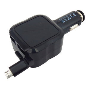 Caricabatterie mega veloce. Connettore Micro USB. Con doppia porta USB. USB 4,8A + Micro USB 1A. Cavo avvolgibile 95cm. Design minimal con illuminazione interna a LED blu. Compatibile con una vasta gamma di dispositivi elettronici. Input: DC 12V-24V. Output: DC 5V-4,8A. Cable Output: 1000mA