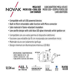 Cavo ricarica 12V + USB Ultra veloce QC3.0 - NOVAK NOVAK