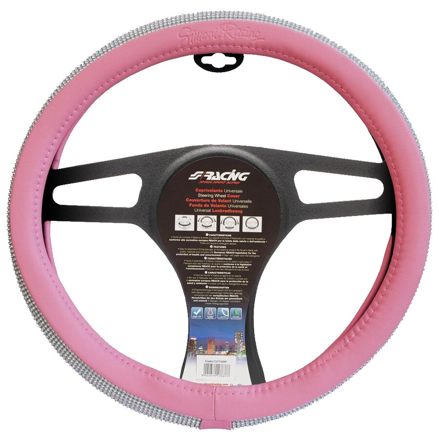 Coprivolante universale in eco pelle rosa con strass per volanti diametro 37-39 cm