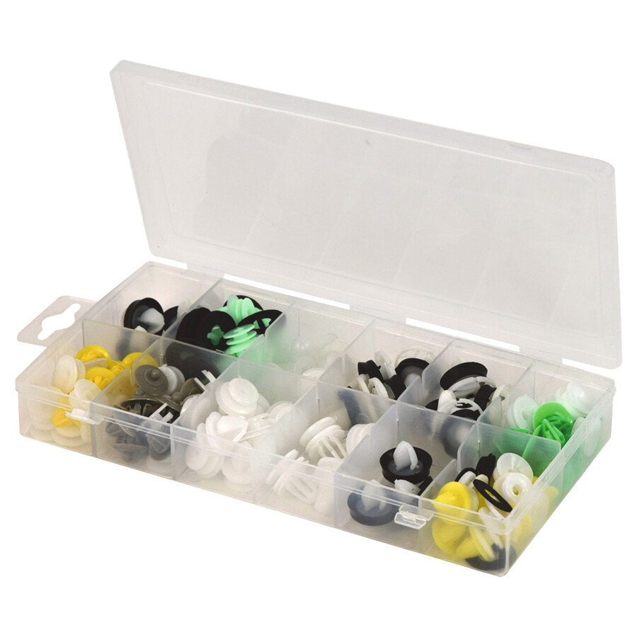 Set di clip, 85 pezzi per pannelli porta Renault. Posizionate sui componenti della carrozzeria, queste clip permettono di fissare: rivestimenti interni, pannelli porta e varie finiture in plastica su veicoli Dacia e Renault. La confezione include 85 clip in materiale plastico