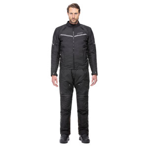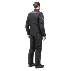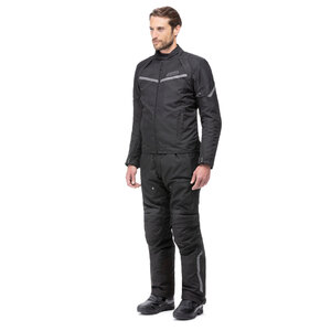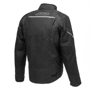 Giacca in tessuto. 4 stagioni. Interno removibile, impermeabile. Giacca esterna in tessuto armaturato con aree rinforzate in materiale rip-stop. Collo con margine in neoprene, interno in microfibra e chiusura frontale con velcro. Chiusura frontale con zip. 2 Tasche al fondo con chiusura zip. Multi regolazioni su maniche, fondo e polsi. Inserti elastici sul gomito. Aperture di ventilazione su spalle e schiena. Dettagli riflettenti su maniche e busto. Interno foderato in tessuto traspirante. 2 Tasche interne con velcro. Tasca interna impermeabile con zip. Zip di connessione su punto vita interno per pantalone AXO Always. Giacca interna in poliestere termo nastrato, removibile, impermeabile e antivento. Interno imbottito e foderato. 2 tasche interne con chiusura velcro. Certificato EN17092:2020 Livello: Classe A. Prot. EN1621-1 di Livello 1 Type A su spalle e gomiti. Predisposizione paraschiena EN1621-2 liv. 2 (paraschiena non incluso L 1903888 L>5XL, M 1903889 S>M)