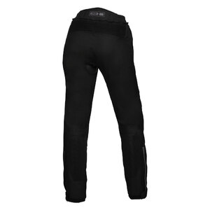 Pantaloni da donna estivi traspiranti realizzati in Airguard 500D e mesh 3D. Inserti in mesh nella zona del cavallo, polpaccio e tibia. Fodera in rete di poliestere. 2 tasche esterne. Aperture di ventilazione sopra le ginocchia. Stampe riflettenti. Protezioni ginocchia regolabili in altezza YF602, EN 1621-1: 2012