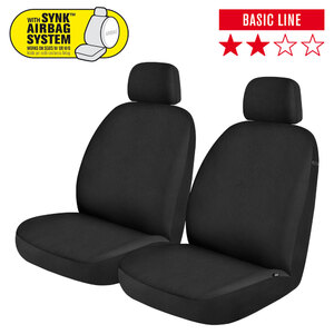 Coppia coprisedili universali anteriori, adatti a sedile con schienale unico alto con poggiatesta integrato. Per quasi tutte le AUTO/SUV con sedili di misura standard. Massima protezione ai vostri sedili rinnovando look e aspetto. Con imbottitura in spugna. Protegge da macchie, sporco, peli di animale, ecc... Lavabile a mano 30°. Installazione rapida. Adatto per sedili con e senza Airbag. Progettato con la tecnologia Synk, consente l'apertura degli airbag. Design classico per rinnovare l'aspetto degli interni dell'auto. Installazione facile e veloce