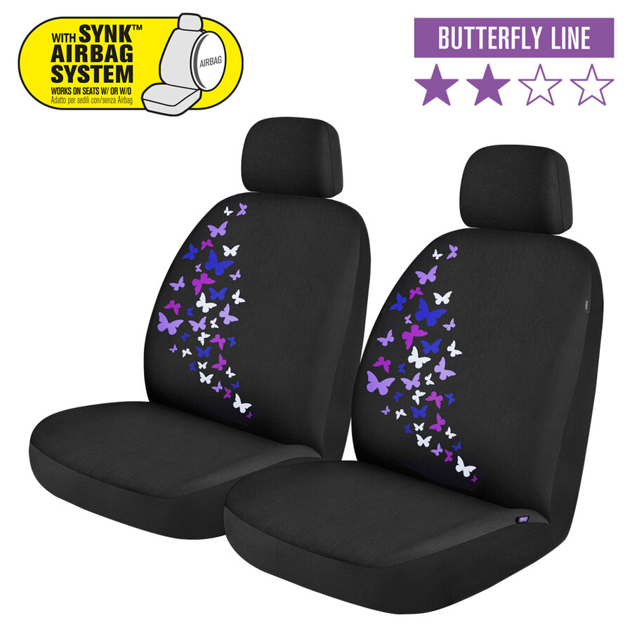 Coppia coprisedili universali anteriori. Massima protezione ai vostri sedili rinnovando look e aspetto. Adatto a sedili anteriori con schienale tradizionale (e poggiatesta separato regolabile). Progettato con la tecnologia Synk, consente l'apertura degli airbag. Adatti a quasi tutte le AUTO/SUV con sedili di misura standard. Protegge da macchie, sporco, peli di animale, ecc... Lavabile a mano. Installazione rapida. Materiale di alta qualità con speciale gomma piuma per garantire durata, protezione e comfort