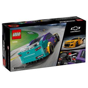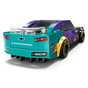Questa potente auto da corsa decorata con colori vivaci e fiamme include dettagli di design delle vere auto che gareggiano nella Nascar Cup Series. Include caratteristiche realistiche, come spoiler posteriore, griglia anteriore, cofano, fari e ruote, interni con roll-bar, cruscotto, cambio ed estintore, e autentici loghi Camaro, Cup Series e Nascar. Il playset include anche la minifigure del pilota Nascar che i bambini possono posizionare al volante per ricreare gare emozionanti. Questo modello di auto costruibile misura 4cm di altezza, 16cm di lunghezza e 7cm di larghezza