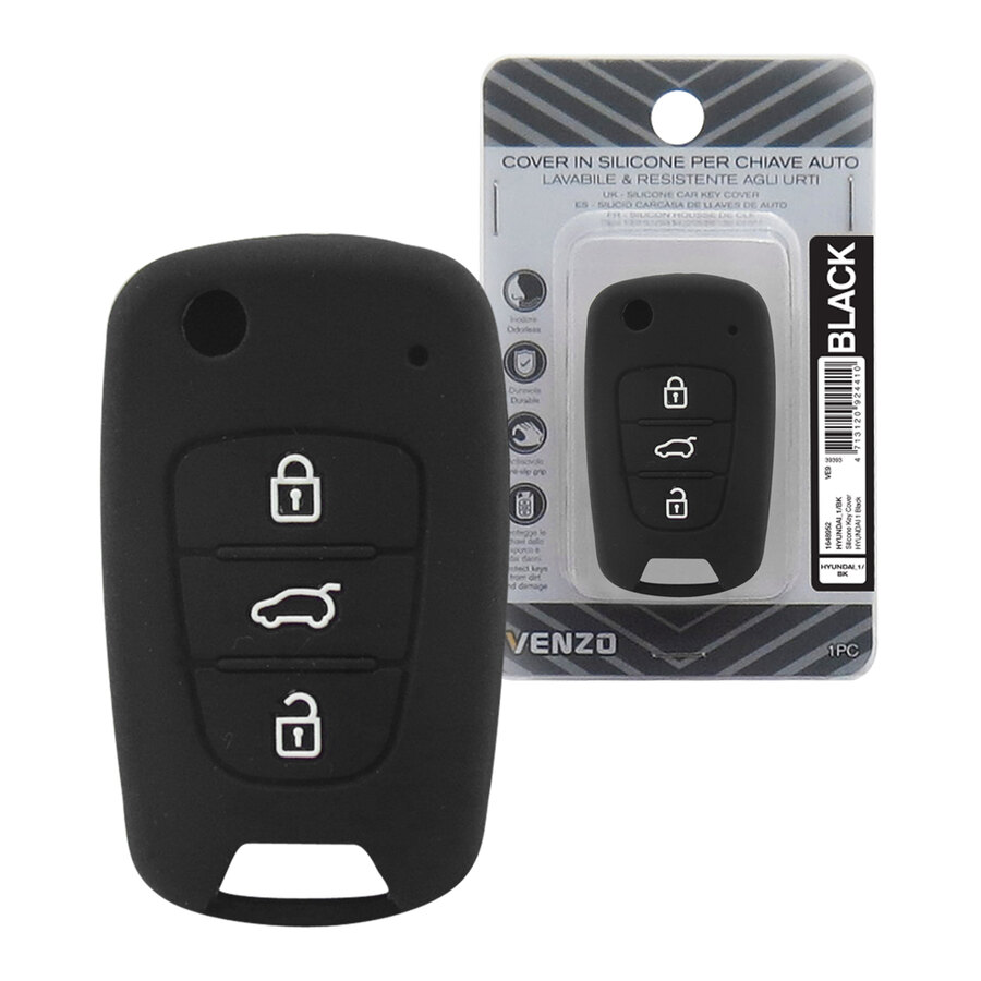 Cover in silicone per chiave auto. Realizzata in materiale morbido al tatto, inodore, di lunga durata e con design antiscivolo. Protegge le chiavi dallo sporco e dai graffi. Facile da installare in pochi secondi. Calzano perfettamente senza compromettere le funzionalità dei tasti. Lavabile e resistente agli urti. Compatibile con Hyundai modello: i30, iX35 (02/2010>), Verna