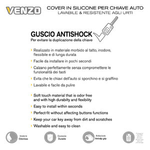 Cover in silicone per chiave auto. Realizzata in materiale morbido al tatto, inodore, di lunga durata e con design antiscivolo. Protegge le chiavi dallo sporco e dai graffi. Facile da installare in pochi secondi. Calzano perfettamente senza compromettere le funzionalità dei tasti. Lavabile e resistente agli urti. Compatibile con Jeep modello: Jeep Renegade