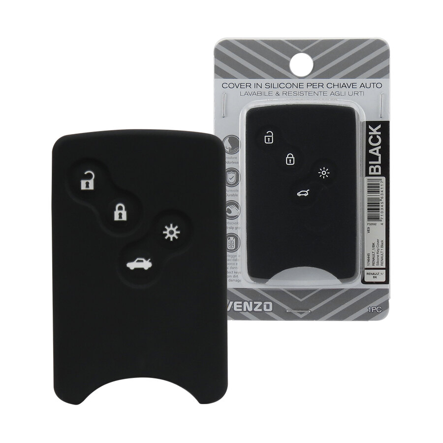 Cover in silicone per chiave auto. Realizzata in materiale morbido al tatto, inodore, di lunga durata e con design antiscivolo. Protegge le chiavi dallo sporco e dai graffi. Facile da installare in pochi secondi. Calzano perfettamente senza compromettere le funzionalità dei tasti. Lavabile e resistente agli urti. Compatibile con Renault modello: Clio, Megane 2, Megane 3, Scenic