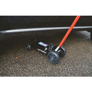 Cric carrello mobile. E' dotato di due martinetti per un sollevamento rapido. Le sue ruote offrono un'eccellente stabilità, anche su sabbia o terra. Questo cricco è adatto a tutti i tipi di veicoli 4x4. Capacità: 2 tonnellate. Campo di sollevamento: da 155 a 575mm. Ruote anteriori: diam. 140mm. Ruote posteriori: diam. 200mm. Cuscinetto protettivo in gomma. Maniglia per il trasporto. Peso: 28,6kg. Standards CE