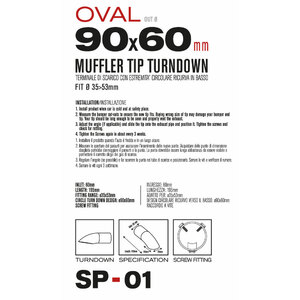 Terminale ovale 90x60mm, con estremità ricurva verso il basso. Adatto per scarichi con uscita: 35>53mm Ingresso: 60mm Lunghezza: 195mm Installazione: raccordo a vite. Per ridurre il rumore e deviare i gas di scarico caldi dal veicolo. Acciaio inossidabile di alta qualità. Non necessita di saldature e trapanature. Universale: si adatta alla maggior parte delle uscite delle marmitte. Sistema di fissaggio incluso