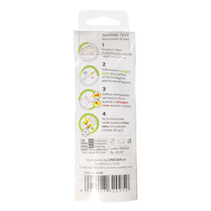 Alcool test tascabile, monouso, pratico e discreto. Semplice da usare, il risultato si vede in pochissimi minuti. La confezione include 2 test monouso
