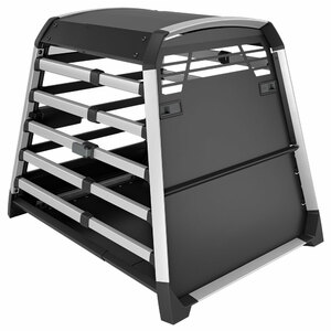 Trasportino per cane per auto sicuro, affidabile e facile da usare che protegge sia i cani che le persone. E' la scelta perfetta per viaggi in auto sicuri e comodi con il tuo amico a quattro zampe. È stato attentamente sottoposto a crash test. La porta con ammortizzatori a gas si apre e chiude delicatamente e il trasportino dispone di un antifurto integrato per una maggiore sicurezza. Estremità arrotondate, può essere regolato in profondità per una compatibilità perfetta nel bagagliaio. E' dotato di fasce di tensione per garantire che rimanga al suo posto durante il viaggio. Massima capacità di carico 55kg