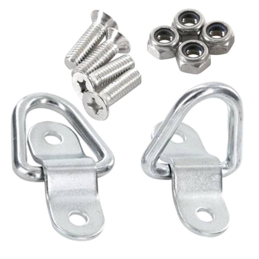 Anelli per ancoraggio. Acciaio A3 zincato. Capacità di ancoraggio: 180 kg. Carico di rottura: 540 kg. Include set 4 viti M6x20 mm con dadi autobloccanti. Facili da installare