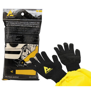 Guanti con manica lunga ad alta visibilità con il palmo antiscivolo per il montaggio delle catene da neve. Ideali per il montaggio delle catene da neve. Il palmo punteggiato fornisce maggior aderenza e durata. Protegge le mani da tagli e abrasioni. Manica con colore ad alta visibilità per la massima sicurezza. Copri manica da 82cm per non sporcarsi. Offre maggior calore lavorando in condizioni di tempo freddo. Pratico elastico al polso e nella manica. Riduce l'affaticamento della mano. Durata e comfort. Utili da usare in altre attività senza sporcarsi