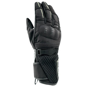 Guanto lungo, 100% impermeabile. Dorso in tessuto elasticizzato. Palmo in scamosciato sintetico con rinforzi in scamosciato sintetico. Membrana impermeabile Hipora. Imbottitura termica. Nocche preformate accoppiate con tessuto elasticizzato. Slider palmo in materiale espanso. Protezione polso preformata in materiale espanso. Dettaglio stretch su dorso e dita per maggior comfort. Inserto touch su indice e pollice. Doppio regolatore al polso. Tirante per facilitare la calzata. EN 13594:2015. Level 1 KP