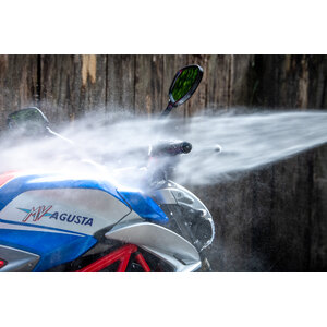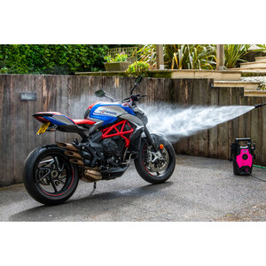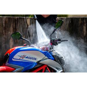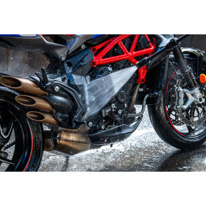 Prima idropulitrice al mondo progettata e costruita esclusivamente per la pulizia di biciclette e motocicli. Include tutto ciò di cui hai bisogno per riportare la tua moto all'aspetto fresco di fabbrica. Dotata di tre lance per soddisfare esigenze di pulizia specifiche. Potenza motore: 1200W. Volt/Frequenza: 220-240V - 50/60Hz. Pressione nominale: 70 bar. Pressione consentita: 100 bar. Massimo Pressione dell'acqua in ingresso: 1,2 MPa. Flusso nominale: 5,5 l/min. Massimo Flusso: 6,5 l/min. Massimo Temperatura dell'acqua: 50°C. Lunghezza cavo di alimentazione: 5m