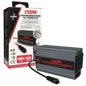 Trasformatore di corrente Permette di colllegare qualsiasi apparecchio a 220V direttamente a 12V. Formato ultra compatto comodo da trasportare e ideale per l'uso quotidiano. Allarme acustico e sistema di spegnimento automatico. Interruttore di circuito On/Off per un funzionamento sicuro. Con porta USB (per ricaricare Smartphone/Tablet) e presa di uscita AC. Uso immediato con collegamento diretto alla presa accendisigari. Include 1 cavo di ricarica 3 in 1 per Smartphone. Frequenza 50Hz. Potenza continua: 100W. Potenza di picco: 200W. Porta di ricarica USB: DC 5V. Entrata: DC12V Uscita: AC 220V. AC out: EU